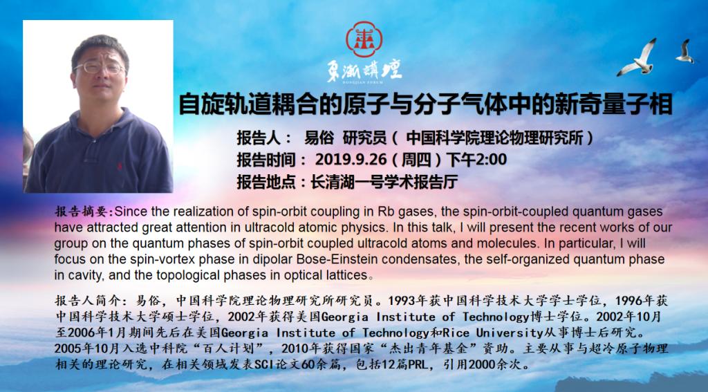“东渐讲坛”第十六讲:自旋轨道耦合的原子与分子气体中的新奇量子相 易俗研究员(...