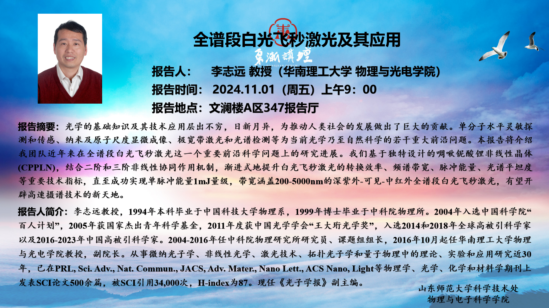 “东渐讲坛”第三十七讲:全谱段白光飞秒激光及其应用