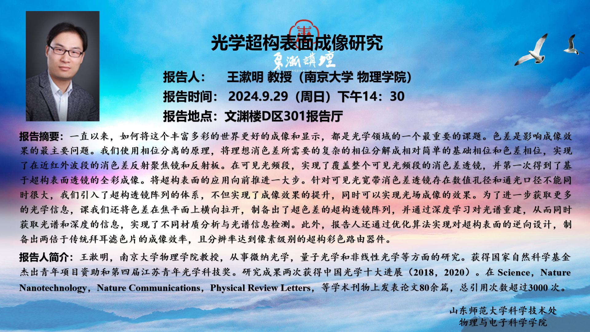 “东渐讲坛”第三十五讲:光学超构表面成像研究