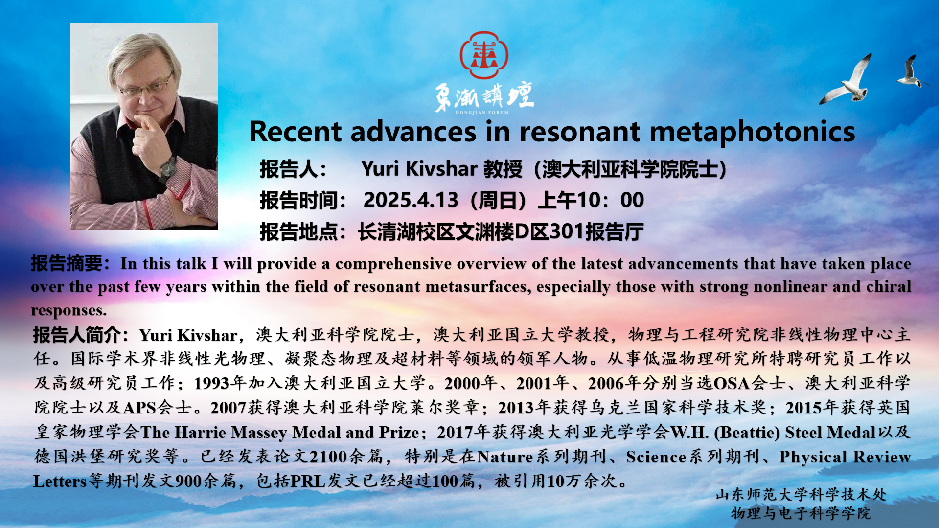 “东渐讲坛”第四十一讲:Recent advances in resonant metaphotonics