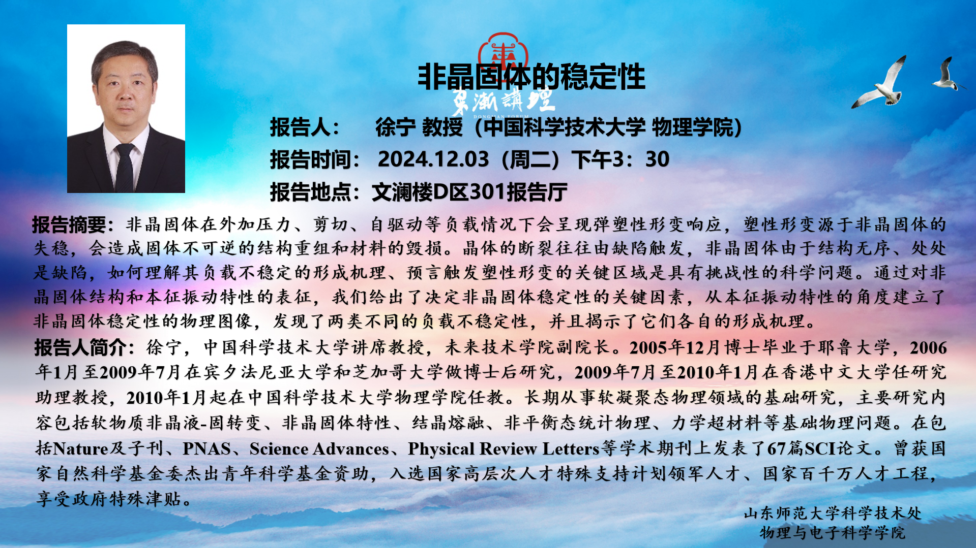 “东渐讲坛”第三十九讲:非晶固体的稳定性
