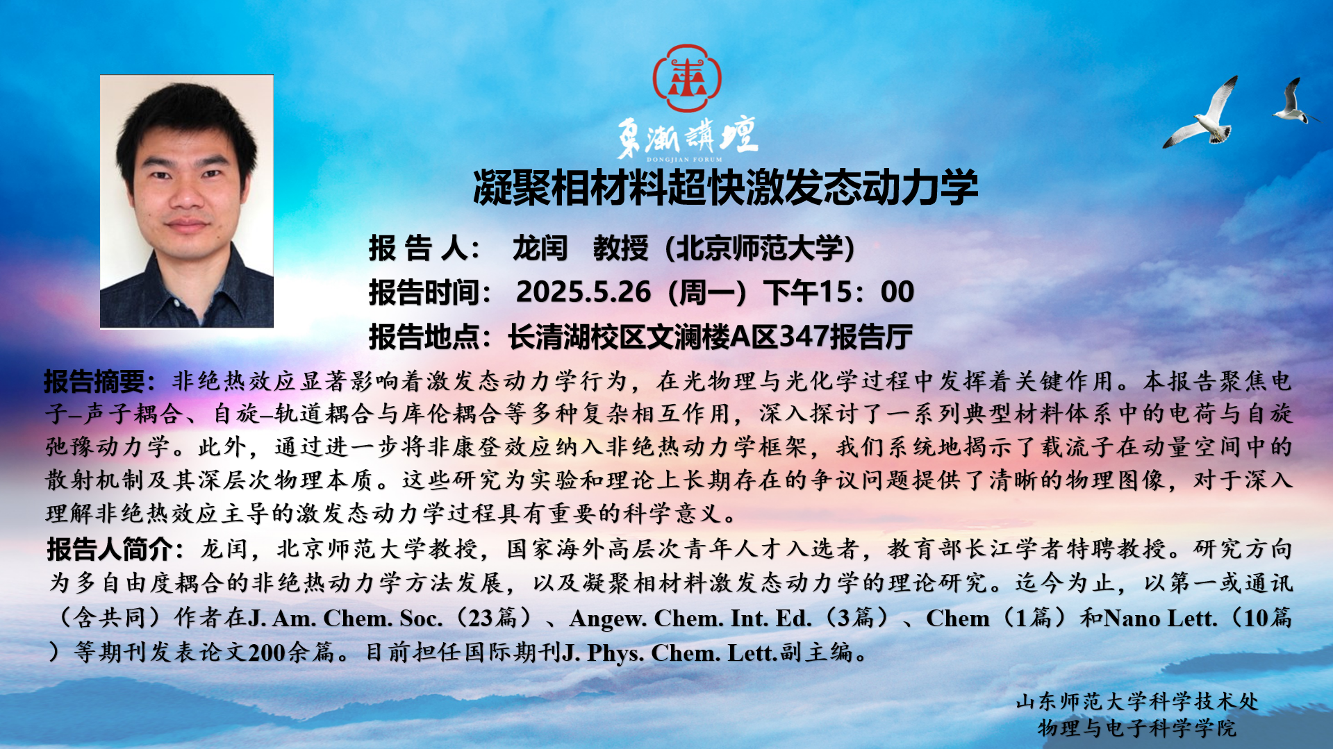 “东渐讲坛”第四十二讲:凝聚相材料超快激发态动力学