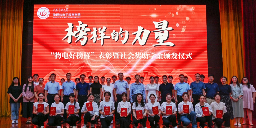 6月20日下午,物理与电子科学学院在长清湖校区树蕙堂隆重举行“物电好榜样”表彰暨社会奖助学金颁发仪式,对表现突出的59名本科生、研究生予以表彰奖励。校党委常委、副校长周珊珊出席活动并讲话。山东博视雅建设工程有限公司董事长陈实,大恒光电山东区大区经理王浩然,山东万腾数字科技有限公司人力总监邹琛,山东师润文化科技有限公司品牌经理秦富民,山东师大翰林文创项目总监郑欣瑞等捐资助学企业嘉宾受邀参会。校团委书记尹弢,...