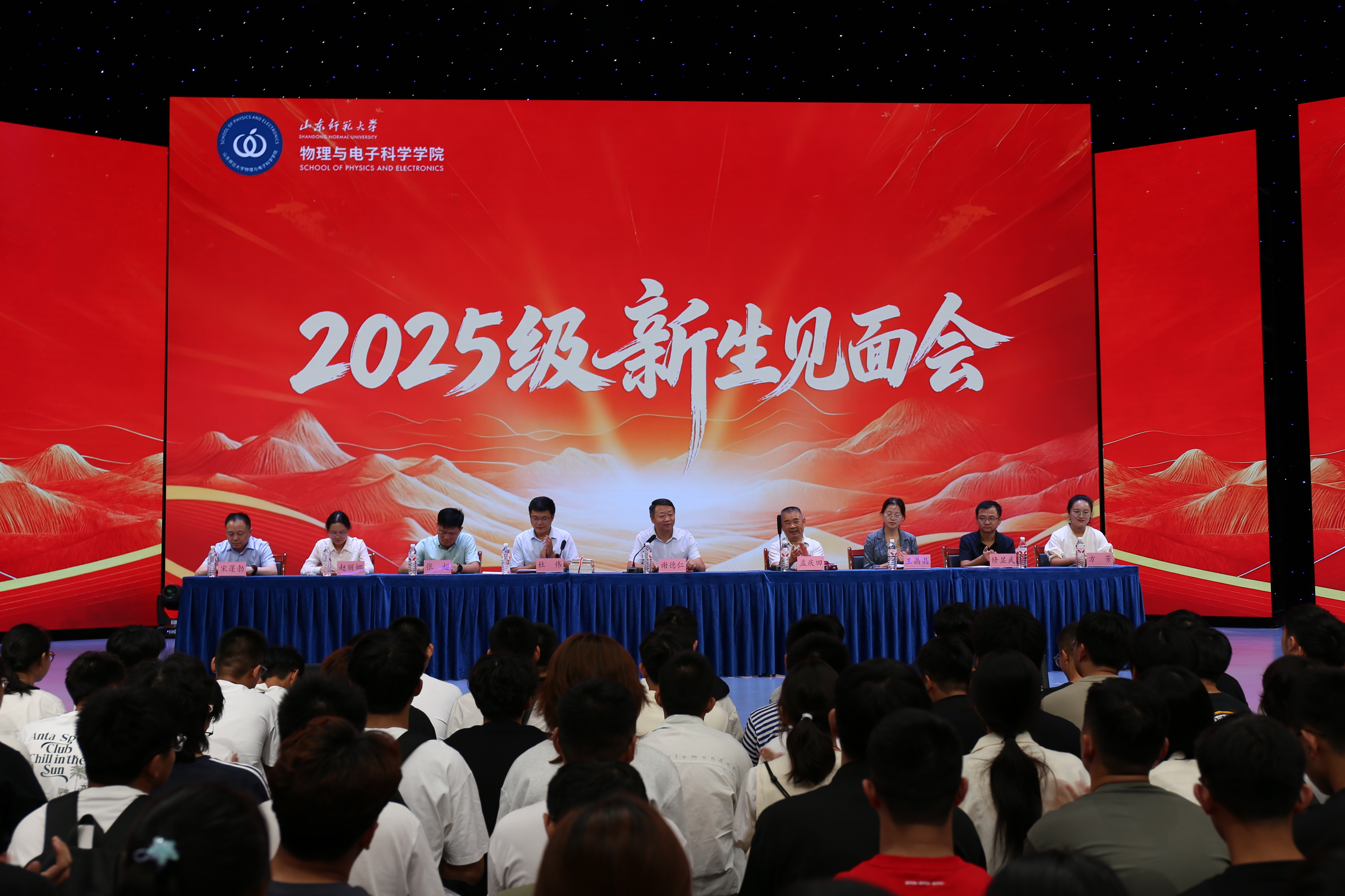 9月12日下午,物理与电子科学学院于长清湖校区文浚楼演播大厅举行2025级新生见面会。学院党委书记谢德仁,退休教师代表孟庆田,副院长王晶晶等领导老师出席会议。此次会议由杜伟主持,全体辅导员及2025级全体本科生、研究生参加。谢德仁对新生的到来表示最热烈的欢迎与诚挚的祝贺,并介绍了学校的发展历程、办学特色和人才培养成果。同时对同学们提出四点期望:胸怀家国、扎实本领、勇于创新、沉淀品德,他希望同学们能在大学阶段坚定方向、...