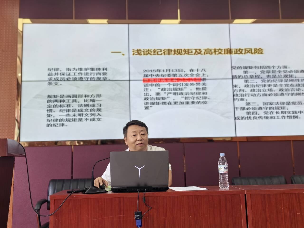 为推进党纪学习教育走深走实,强化党员队伍党性教育和纪律规矩意识,进一步加强党风廉政和师德师风建设,6月20日下午,物电学院党委在文澜楼F347报告厅举办“尊法崇纪涵师德”廉政教育报告。本次报告由学院党委书记谢德仁担任主讲,学院领导班子、党委委员、教研室主任、辅导员及各支部支委委员参加。谢德仁以《中国共产党纪律处分条例》中“六大纪律”为切入点,讲解了高校廉政风险的重点要求,通过多起校园违法犯罪案例警示,使在场党员干部自觉警醒,...