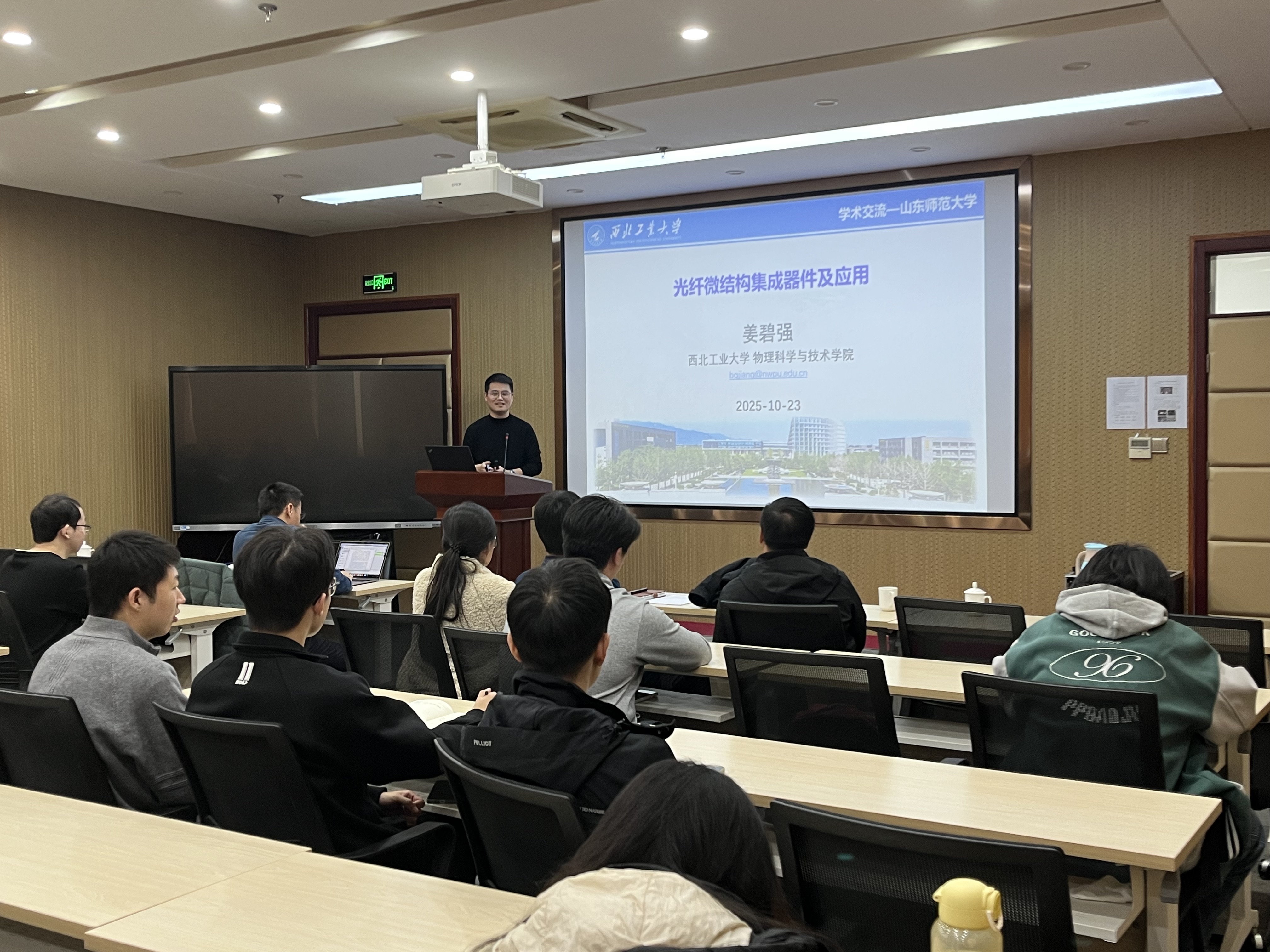 10月23日下午,西北工业大学物理科学与技术学院姜碧强教授在长清湖校区文渊楼D区301报告厅开展了题为“光纤微结构集成器件及应用”的学术报告,为相关领域师生带来前沿科研成果分享。姜碧强教授学术背景深厚且成就斐然,是西北工业大学教授、博士生导师,同时也是欧盟“玛丽·居里”学者、国家优秀青年科学基金获得者。他主要从事光纤微结构器件、非线性光学及应用技术研究,在《Light》等国际重要期刊上发表论文70余篇,荣获中船重工集团科技二等奖、...